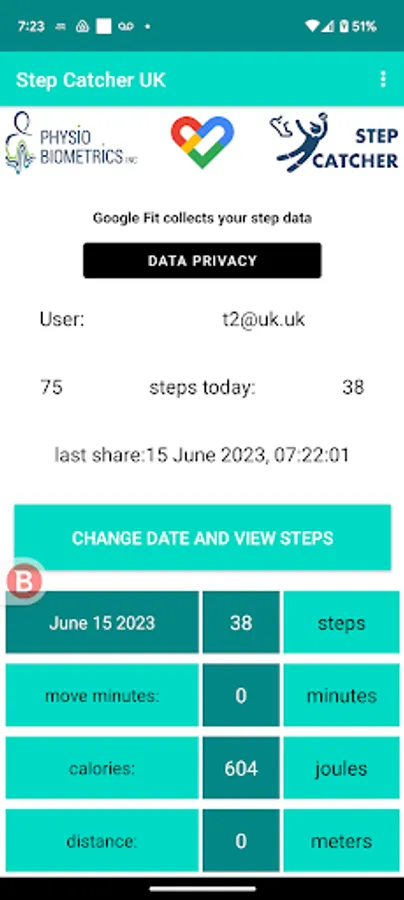 StepCatcher provides Researchers access to your Google Fit step data. Data is stored on London Google Firebase.