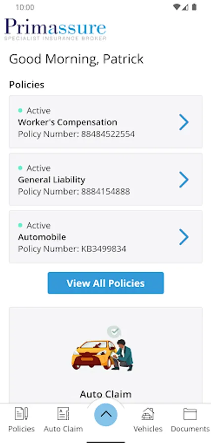 Keep all of your insurances in one place with the easy to use Primassure app, available 24/7.