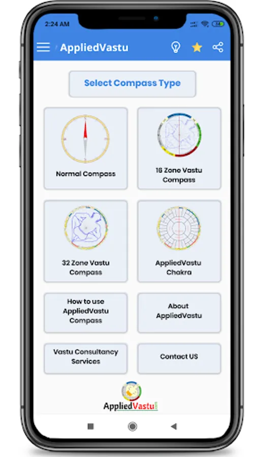Vastu compass by AppliedVastu application is light in size and userfriendly. Every android user can download and install this app with small data. The digital compass app can only indicate the direction, whereas this app can instantly mark 16 zones with the vastu Purusha mandala.