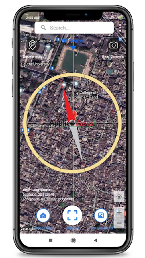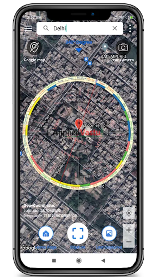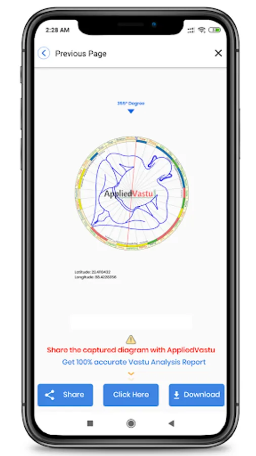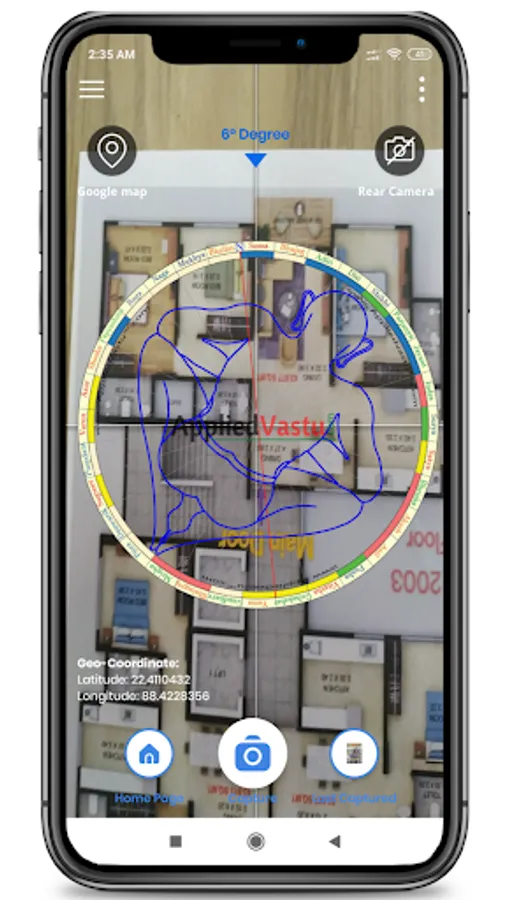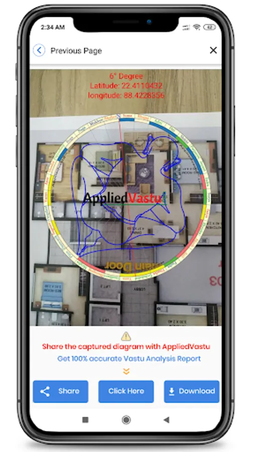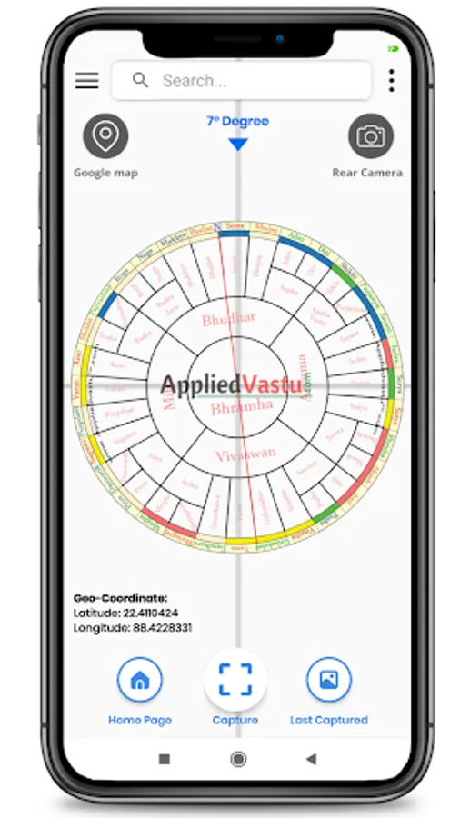 The Vastu compass by AppliedVastu devolved to capture the image has the facility to download and share the grided image with the AppliedVastu watermark.