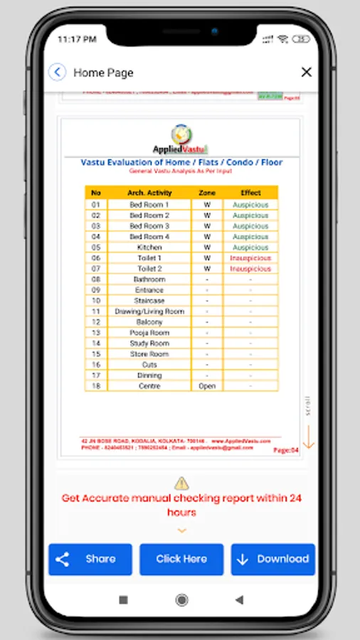 For manual professional vastu checking reports, you contact with AppliedVastu team.