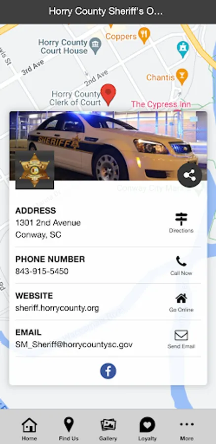 Welcome to the Horry County Sheriff's Office Mobile App. I hope that you find the information we have provided to be useful and easy to locate. The purpose of this App is to help Horry County Sheriff's Office collaborate with its community to prevent crime, promote safety and enhance the quality of life. We believe this App will help Horry County Sheriff's Office become the most effective community-focused Sheriff's office in America.