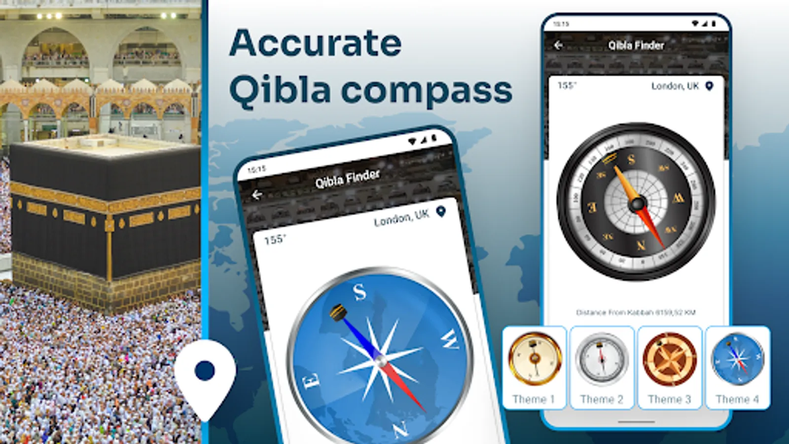 Smart and fast Qibla Finder app shows 100% accurate direction worldwide!