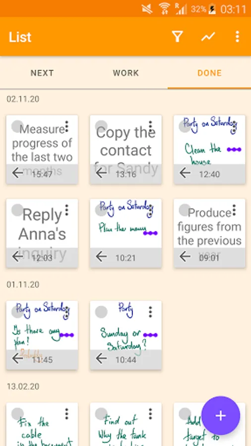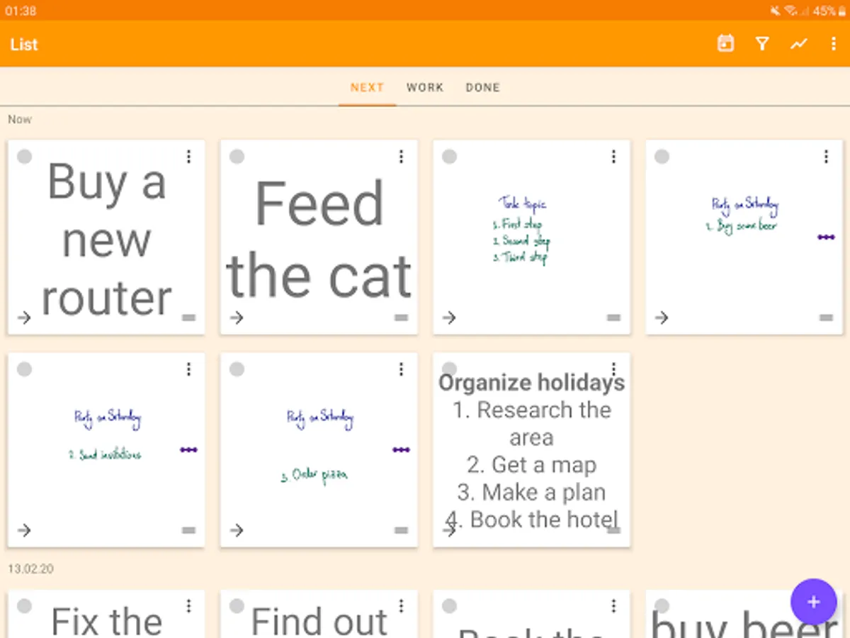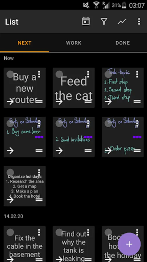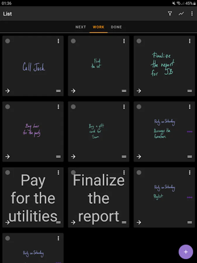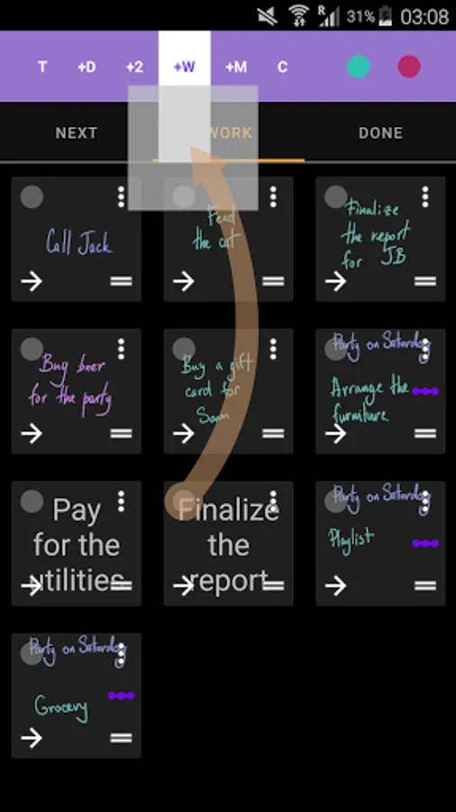 Use digital post-its to sketch your personal tasks and move them from planned to work and finally to done.