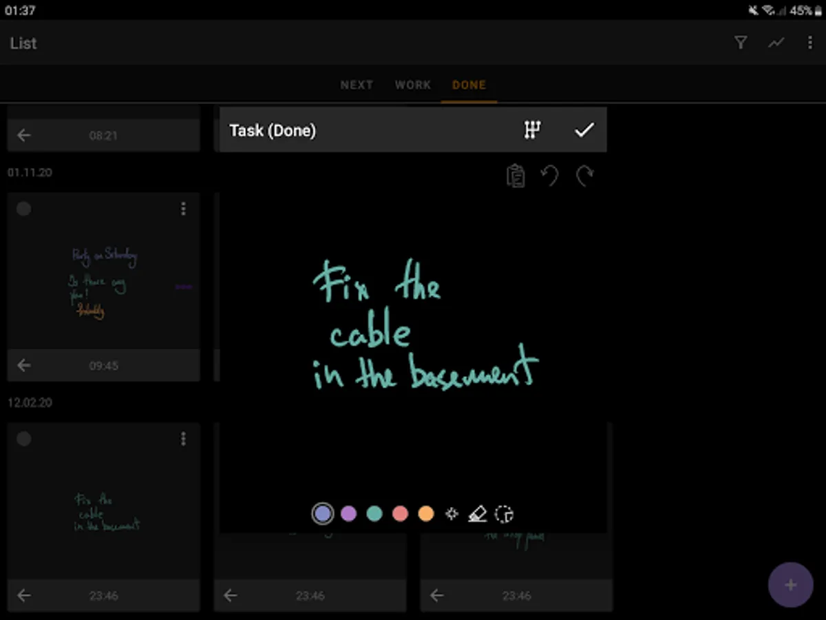 - The writing space is infinite, task thumb is saved from the part, displayed the last