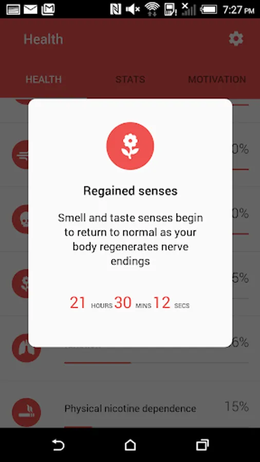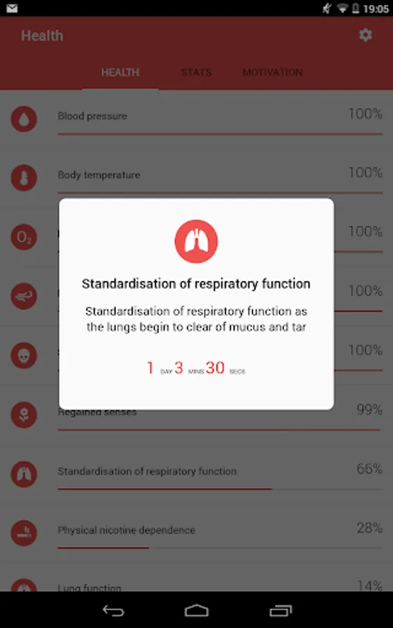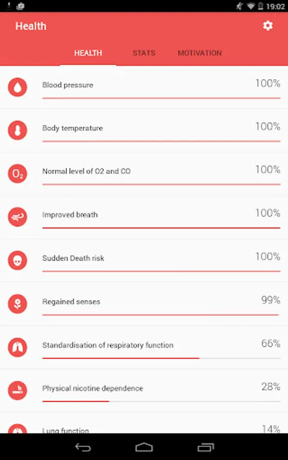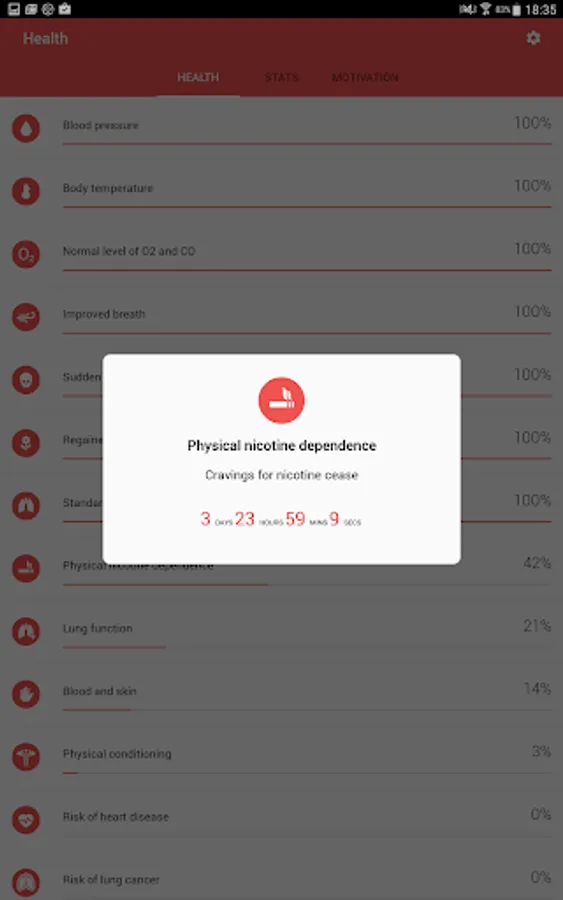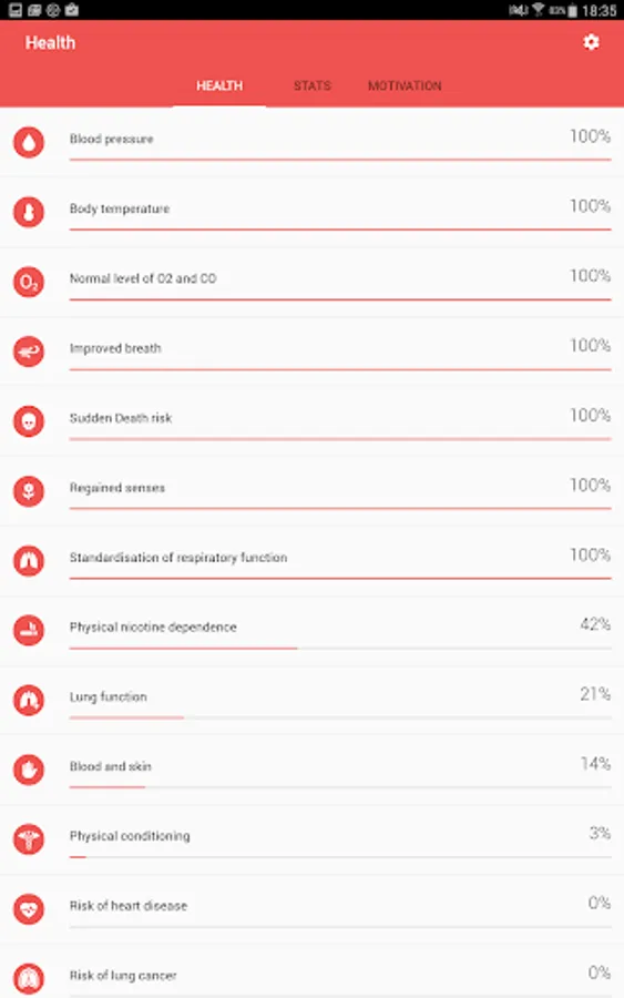 After deciding to quit tobacco the first 2 weeks is always the most difficult period, this app helps motivate and keep you on course during this period, and forever thereafter. After entering your data regarding your habit smoking, the app uses this information to show you the health benefits that occur within your body in relation to being smoke free.