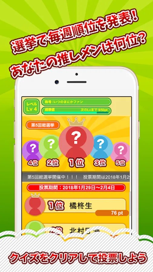 全国のファンとクイズで対戦!総選挙で推しメンをランキング1位に押し上げろ!