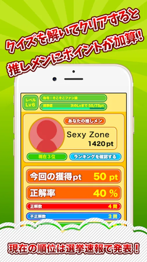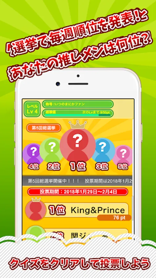 Compete with fans all over the country in a quiz! Push Men to No. 1 in the general election!