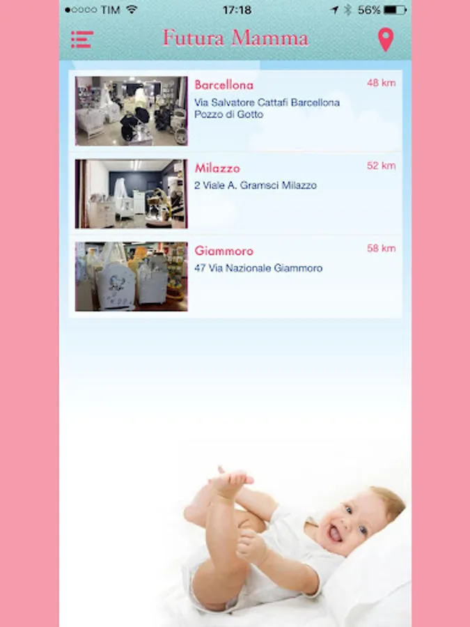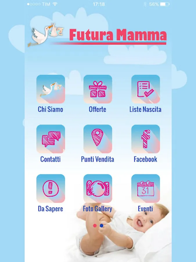 With the App FUTURE MOM can be up to date on the latest news and offers of our Retail Store, you'll always be just a click of business contacts and learn about the map of our stores addresses. In most directly the App you can consult our Lists Birth comfort of your home, choosing the most appropriate gift to your loved ones complete with personalized dedication, to package it and deliver it thinks FUTURE MOTHER!