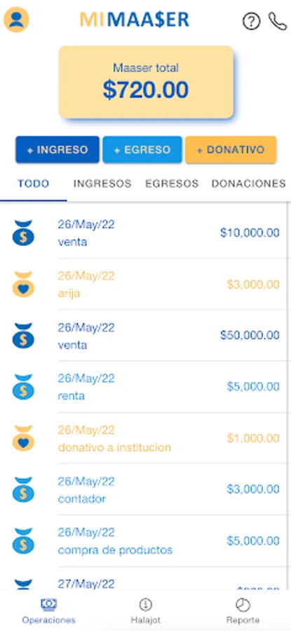 In this app you can register your income, expenses and donations and we will calculate how much maaser you have pending