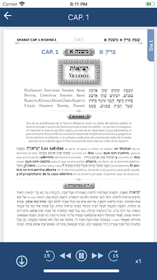You will be able to study each Mishna guided by an audio with the explanation and comments in Spanish.