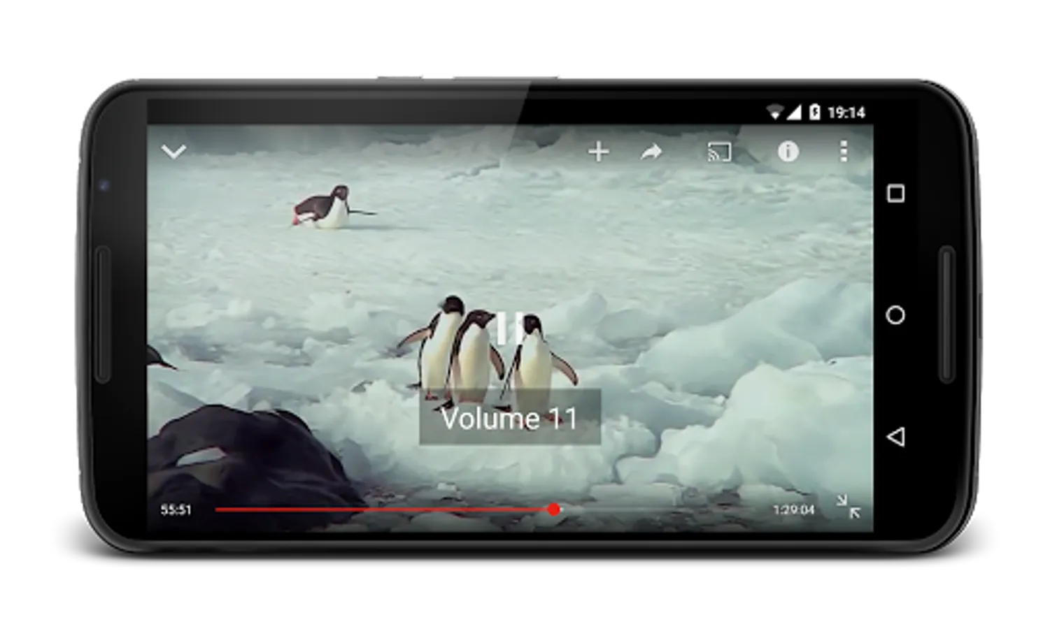 You can increase or decrease the volume by swiping your finger up or down on the right side of the screen. Swiping the finger on the left adjusts the screen brightness.