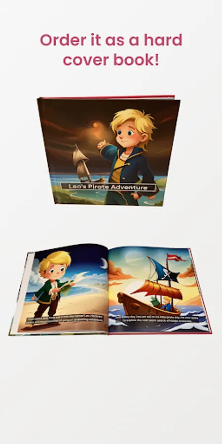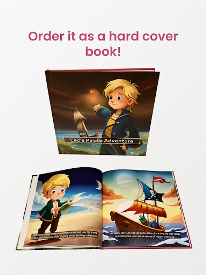 If you prefer a physical copy, you can choose to order your personalized children's book in a durable hardcover format. The book is beautifully printed in full color, ready to be cherished and enjoyed time and again.