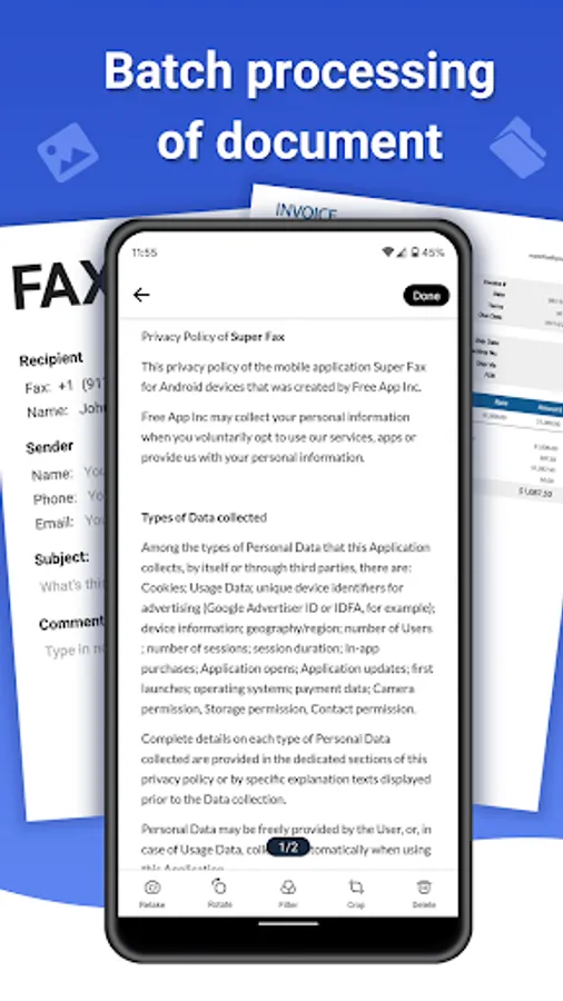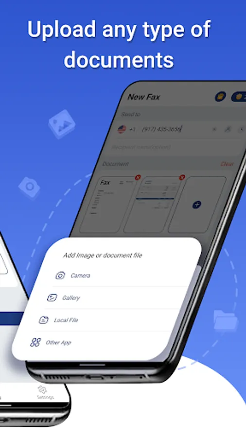 Super Fax - Send fax from phone is very powerful among fax apps for android on the market. it turns your phone into a fax machine for documents, photos, receipts and other texts. With it, you can fax from phone anytime and anywhere. Support fax in various formats. No fax scanner machine required when sending fax from android. Simple operation in the easy fax is friendly for anyone to fax online.
