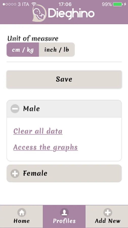 Dieghino is a simple application, studied by TRIAS, which you can use to monitor your child's growth (weight and height) and verify that it is consistent with the parameters recommended by the World Health Organization.