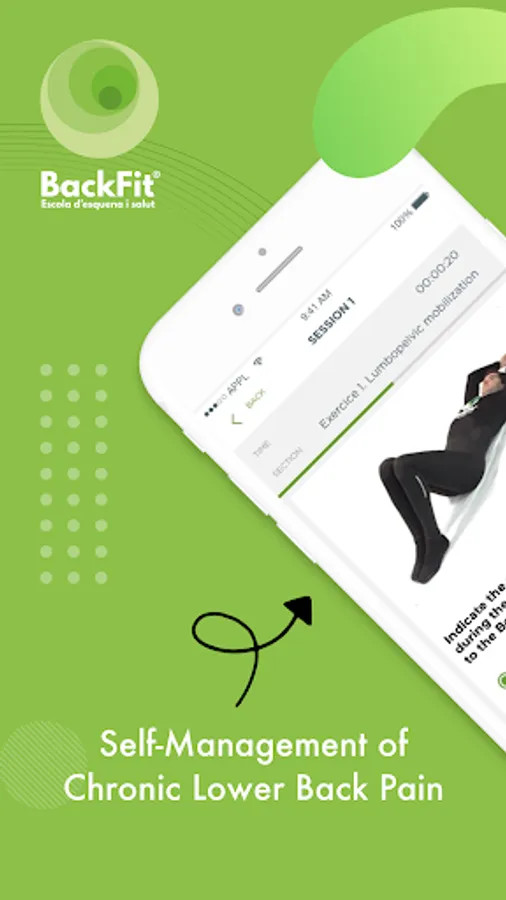 The Backfit app, developed following the clinical practice guidelines, offers indications for back pain self-management through strength, motor control, relaxation, flexibility, and self-massage exercise. It also includes educational videos and detailed information that will help you a better understanding of the health of your back.