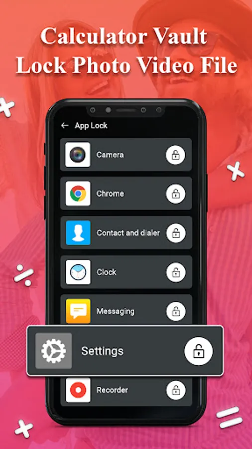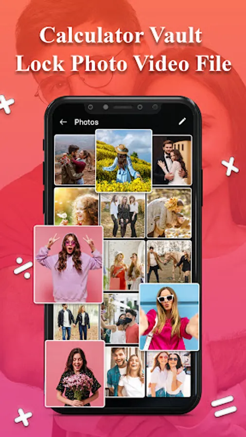 Click the Add Icons (+) after opening the Image/video/audio interface, select by long press images/videos/audios from the gallery or album then click the lock icon to lock or hide the images/video/audio in the Secret Calculator Vault Safe App.