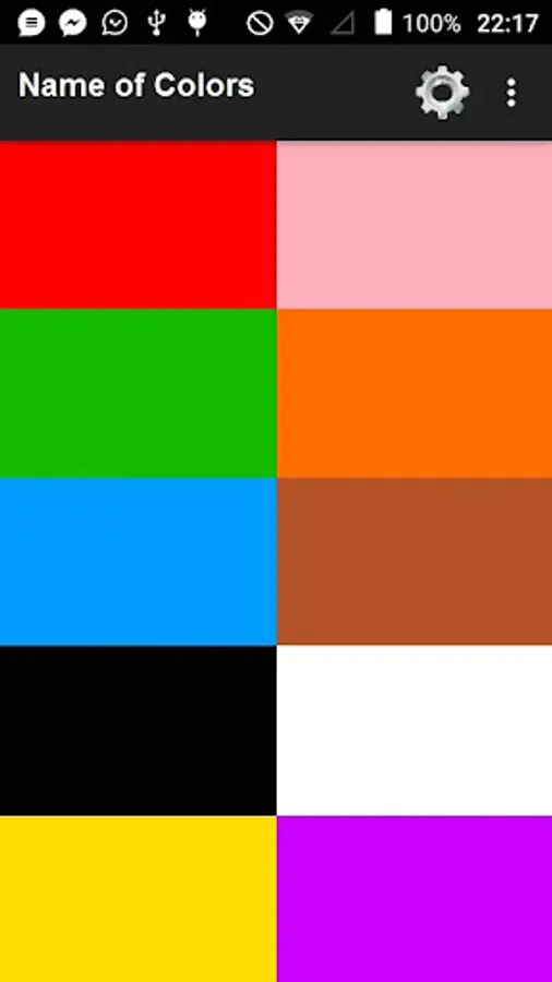 Colors app is for the people who are learning foreign languages. It teaches colors name in different foreign languages with pronunciation like 中文, Español, English, हिंदी, العربية, Português, বাংলা, русский, 日本語, اردو, français, ښتو, فارسی, malay, Java, Deutsche, 한국어, Türk, தமிழ் and Tiếng Việt
