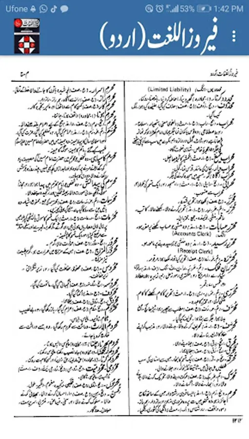 Feroz ul Lughat is written by Alhaj Moulvi Ferozuddin. It is an Urdu to Urdu Dictionary and consists of 120,000 words, idioms, phrases, foreign languages words (used in Urdu), scientific and technical terms and there grammatical references.