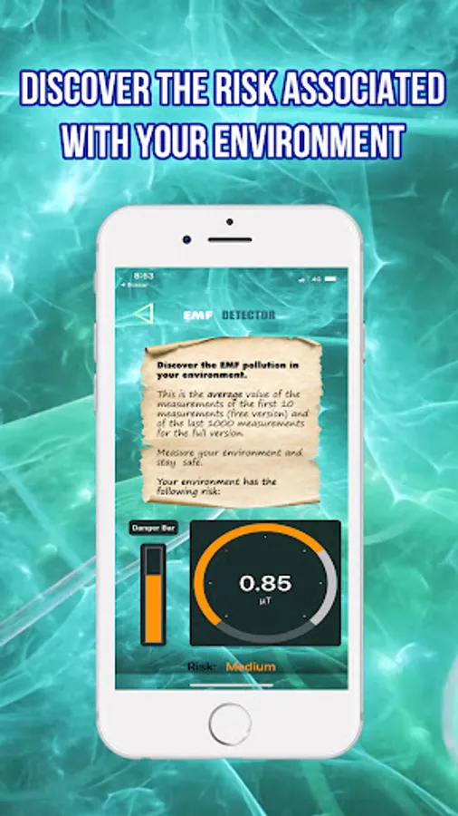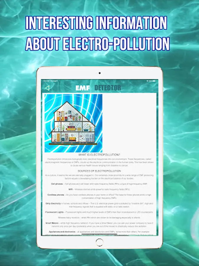 The EMF Meter Detector app on your device will help you detect the EMF risk zones.