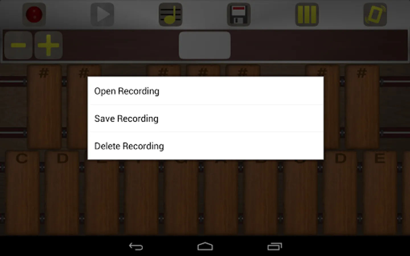 In addition it is possible to record, save and load recordings. It also has vibrato feedback on the keys for more realistic feeling.