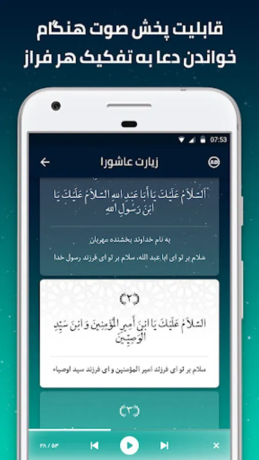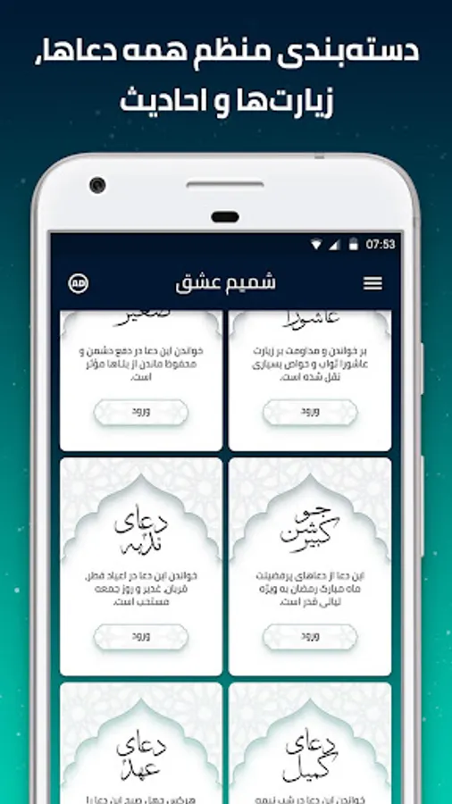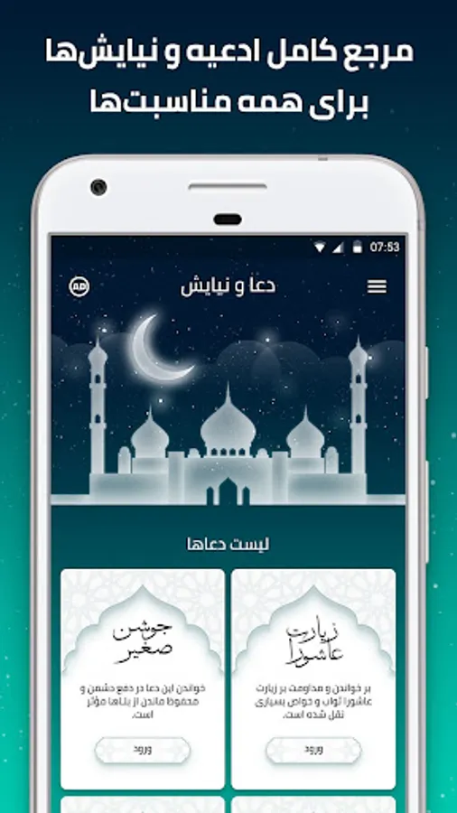 مجموعه پیش روی شما، منتخبی از برترین و پرکاربردترین ادعیه و نیایش های مذهبی با ترجمه فارسی به همراه صوت هوشمند و دلنشین می باشد. برنامه دعاء لكل الحاجات و مناجات مجموعهای جامع و کامل از منتخب ادعیه و زیارات معروف و عام شیعیان از جمله زیارت عاشورا به همراه صوت دلنشین، در محیطی کاملا معنوی است.