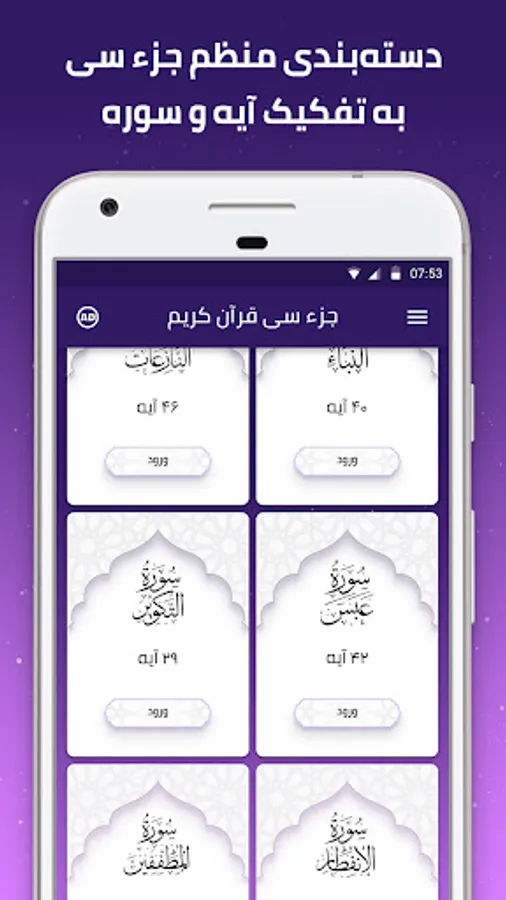 جز سی قرآن کریم همراه با ترجمه و تلاوت صوتی