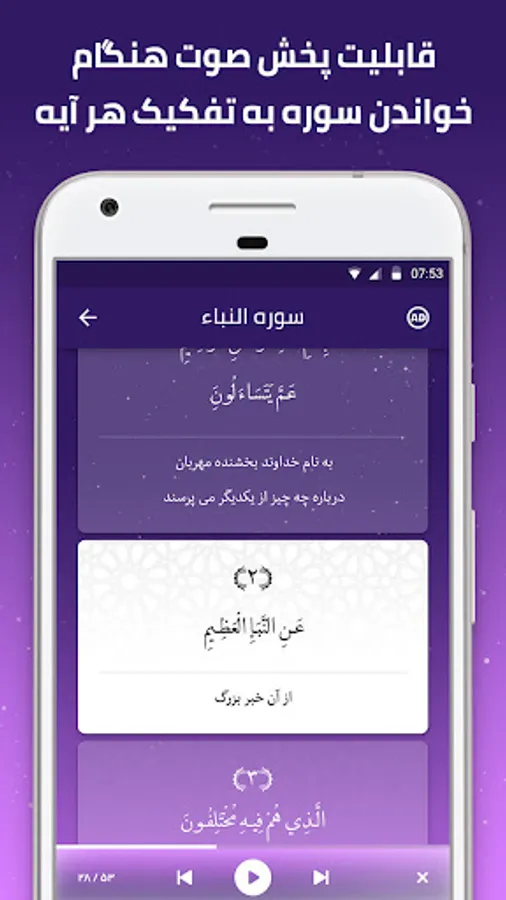 - کنترل کامل روی متن آیات از جمله سایز فونت