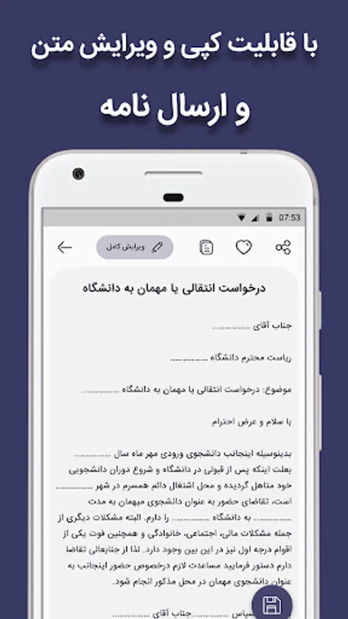 * امکان ویرایش و شخصی سازی همه نمونه نامه ها