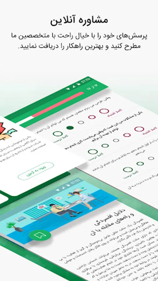 برنامه کتاب روانشناسی و درمان افسردگی با تست های معتبر و مقالات کاربردی یک برنامه تخصصی برای مشاوره روانشناسی در موضوعات مختلف است.