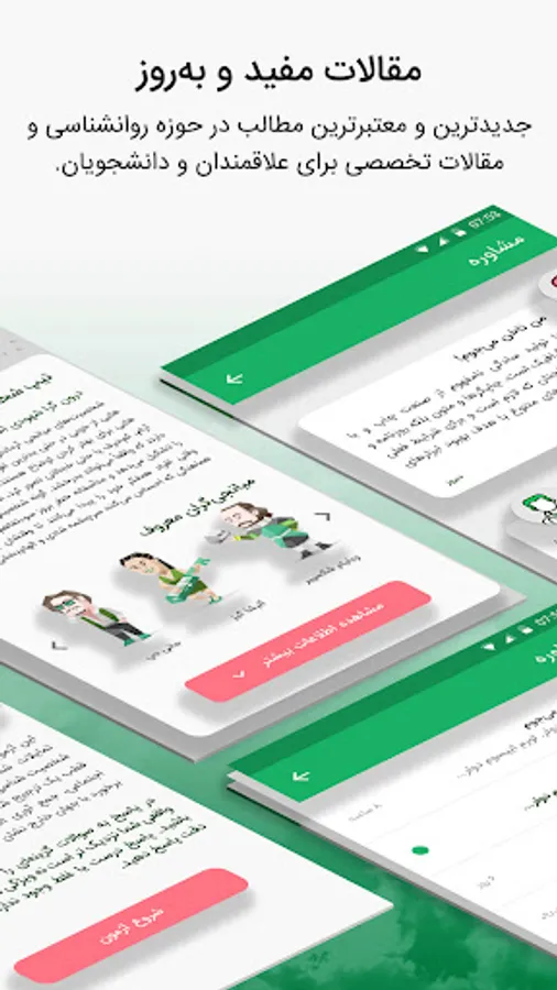 مقالات به روز و معتبر: مقالات مفید و به روز در موضوعات مختلف کتاب روانشناسی، شخصیت شناسی، روانشناسی کودک و مشاوره روانشناسی و همچنین مقالات تخصصی تر برای علاقه مندان به علم روانشناسی بالینی و روانشناسی موفقیت