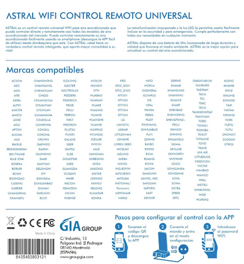 iCONTROL is a universal remote control for air conditioning WIFI can directly and remotely control almost all models of air-conditioning market. You can control your air conditioner remotely using your smartphone (download the APP easy to use) from wherever you are. With iControl you have a real intelligent remote control, which brings convenience to your life!