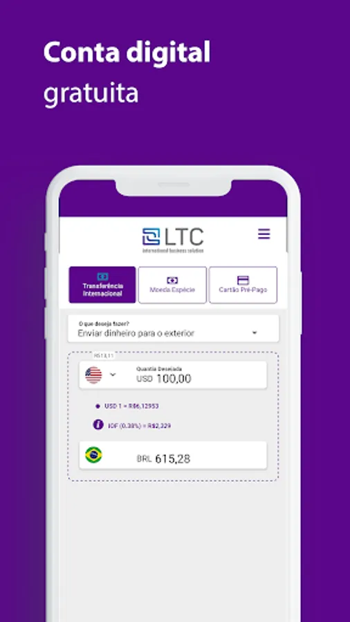 With the Câmbio LTC app, you can consult foreign currency quotes on the home screen.