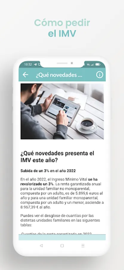 The Minimum Income - IMV Guide Info app is an informative guide that will answer your questions about the Minimum Vital Income, the minimum income that families in extreme poverty or single-parent families can request.