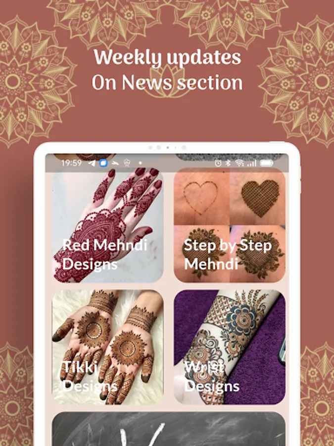 All types of mehendi are available in our mobile app. Easy bridal mehendi designs are also available in our app so you can easily learn step by step and apply mehndi on any bride on any festival. Popular mehndi designs for girls and men can also apply mehndi on their arms, legs, back, and chest. We provide mehndi design 2022 offline for our users to use the app.