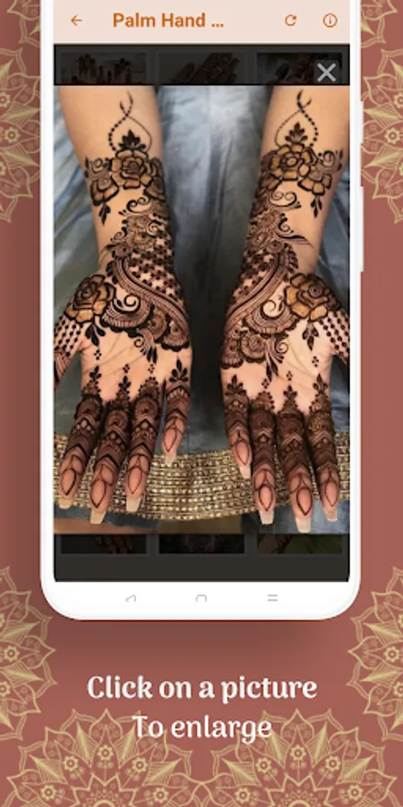If you are a bride looking for bridal mehndi design then you are in the right place. In this Mehandi app, you can see all types of traditional Mehandi designs of 2022 so you can download it now. We provide a unique mehndi design collection within the app to help those girls and brides who don't know how to draw new and latest Mehandi design on any occasion and festival. We all know that Mehendi is applied during Hindu and Muslim weddings, engagement ceremonies, and festivals like Eid, Diwali, Karva Chauth, Bhai Dooj, Navratri, Teej, Eid-ul-Fitr and Eid-ul-Adha and Durga pooja. Everyone can use our offline mehndi designs app anywhere.