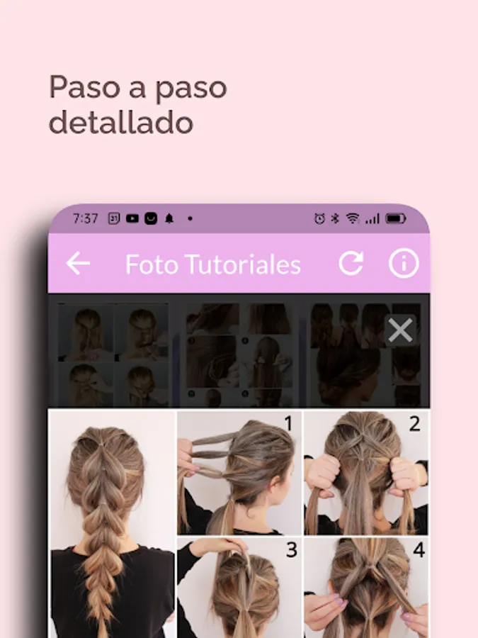 With the Easy Hairstyles App step by step you will learn how to make braids, bows and twist a tail, because the hairstyle tutorial videos in the app are very simple, detailed and easy to do.