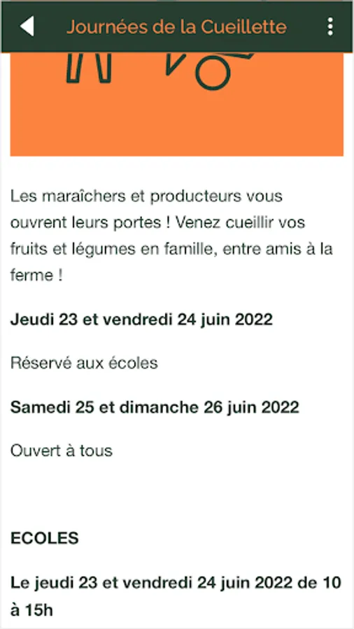 Producers have the possibility of sending "Open picking" directly to users of the application in order to inform them of the picking dates of their organic vegetables and fruits. You will always be informed of farm pick-ups near you!