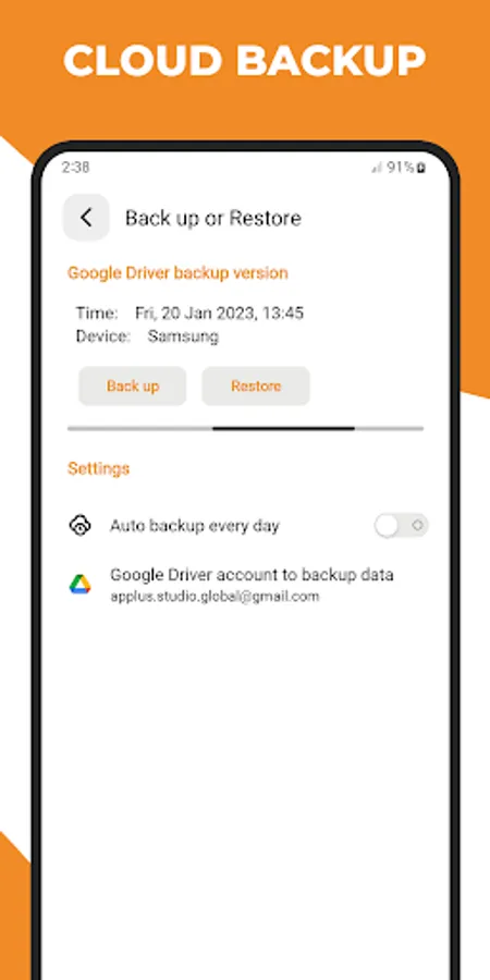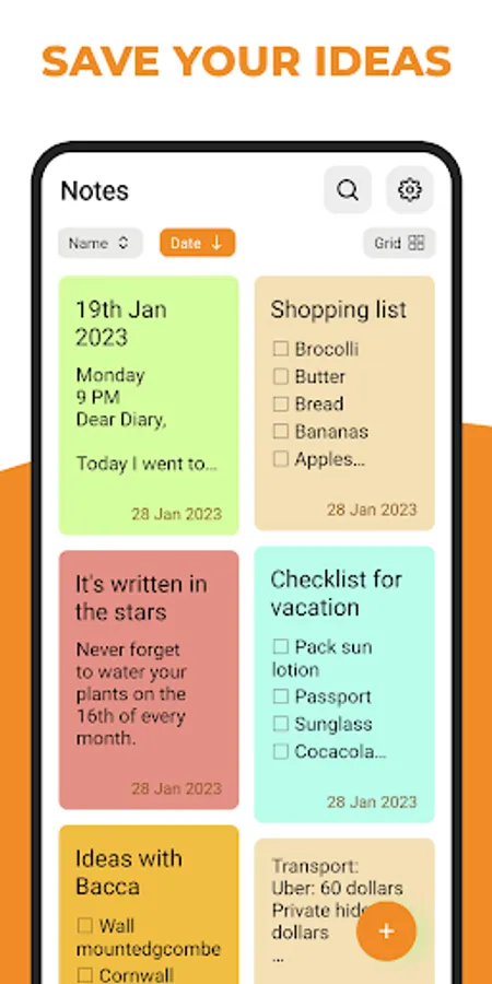 This notebook app supports backing up all your notes and lists to the Cloud. Never worry about losing your notes.