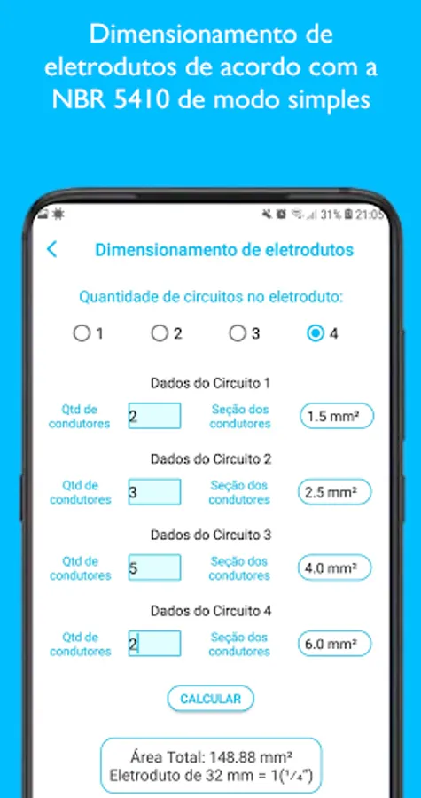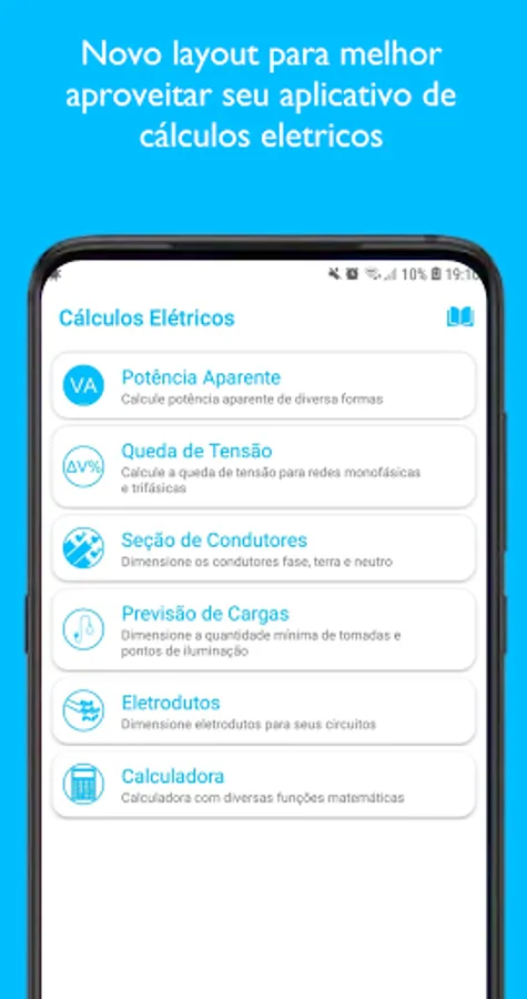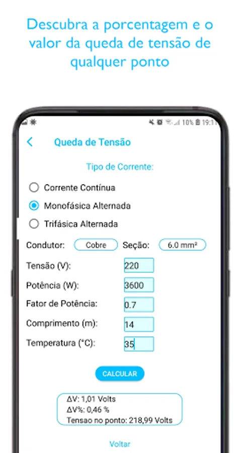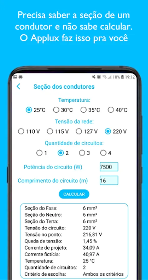 The application has a series of simple electrical calculations that can quickly calculate what is needed just by entering some data.
