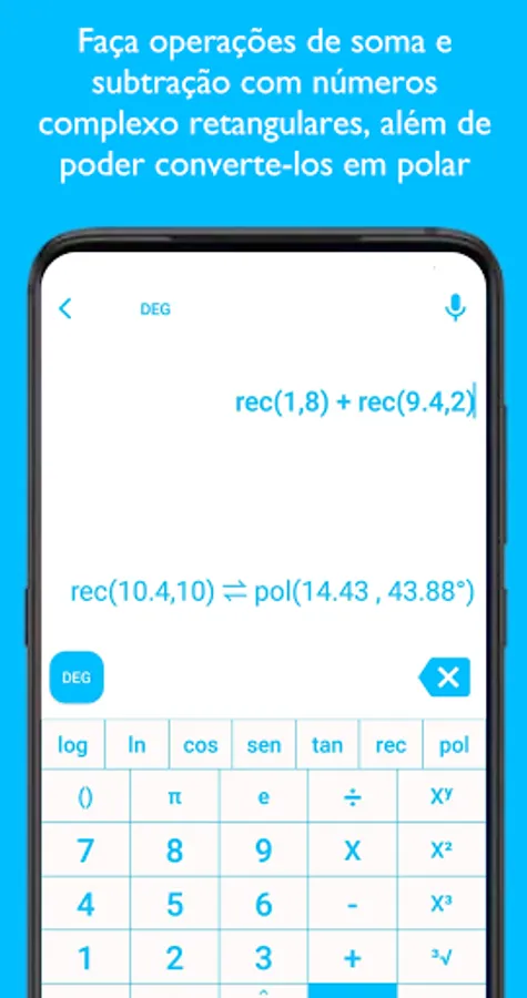 to assist you in calculations. The calculator features voice and complex number operations, in addition to converting from rectangular to polar and vice versa. In the future, account and equation identification features will be implemented by the camera itself.