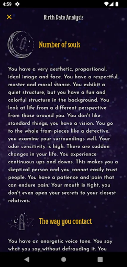 In addition to those interested in numerology, the app can also be used by professional numerologists. Thanks to this app, professionals can create their clients' personal numerological maps more quickly and easily. In addition, professionals can consult their clients in a more detailed way thanks to this application.