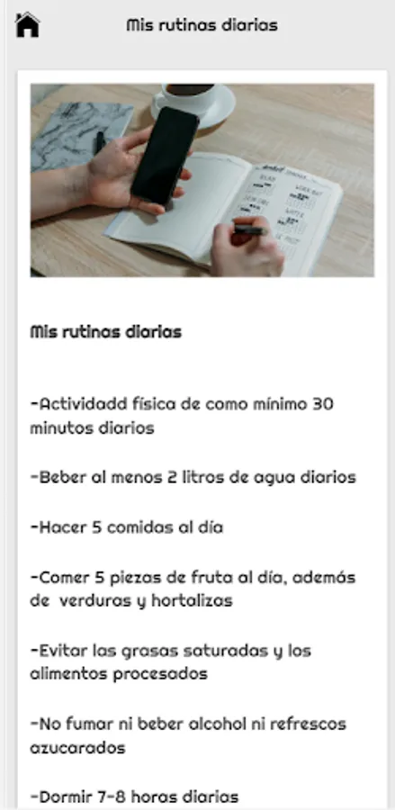 Finally, the "Healthy Living Habits" app incorporates daily routines that we suggest you follow and a calendar to make it easier for you to organize pending tasks and follow-up.