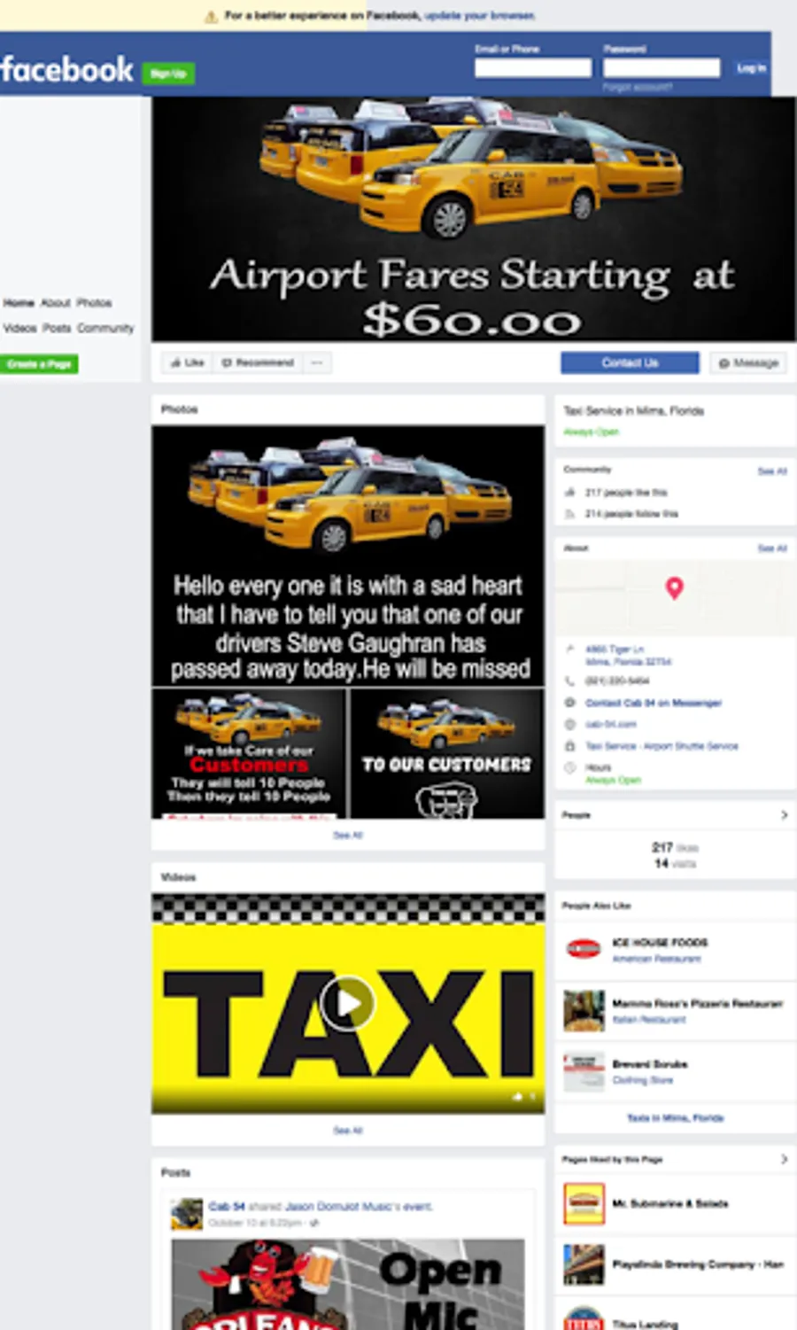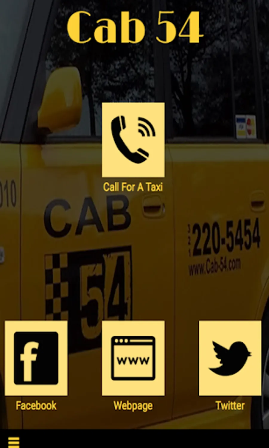 Cab 54 is a premium taxi service servicing Florida's Space Coast. Customers can download the mobile app, and contact our dispatching service instantly. A reputable driver will arrive at the pickup location in our pristine taxis ready to take the customer to their destination. Our prices are among the lowest in the industry. The main function of the app is to give customers a OneTouch calling ability. We also include our social media sites, along with our main website.