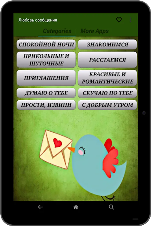 You do not have time to think about what message to send your favorite . This application will help you to confess his love to you dear man, write compliments, talk about their feelings favorite.