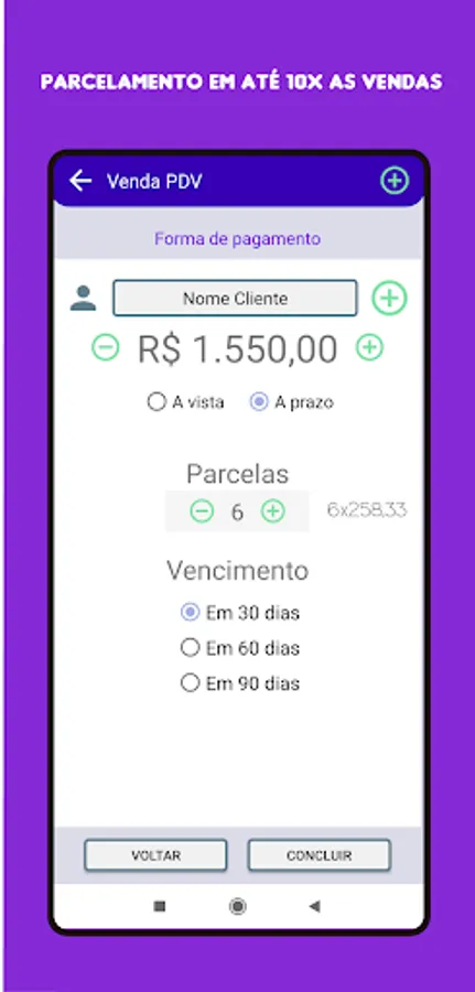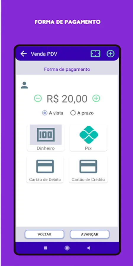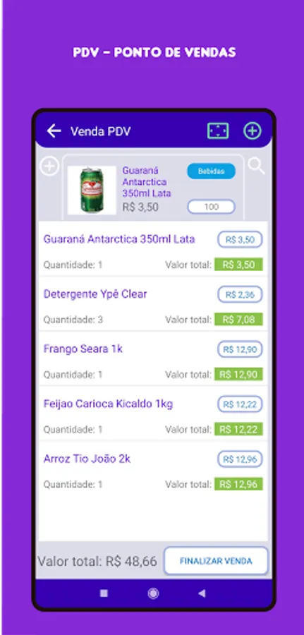 In the app you can use the smartphone's camera to read the barcode or use an external reader. In version 3.0, the Pix payment method was added, generating a QR Code with the sale price.