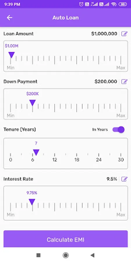 My Finance Calculator is a simple loan calculation tool that helps the user to quickly calculate there EMI. Use this app to calculate your EMI (Equated Monthly Installment) for a personal loan, mortgage loan, business loan, car loan, and various other loans based on the principal loan amount, rate of interest and loan tenor.