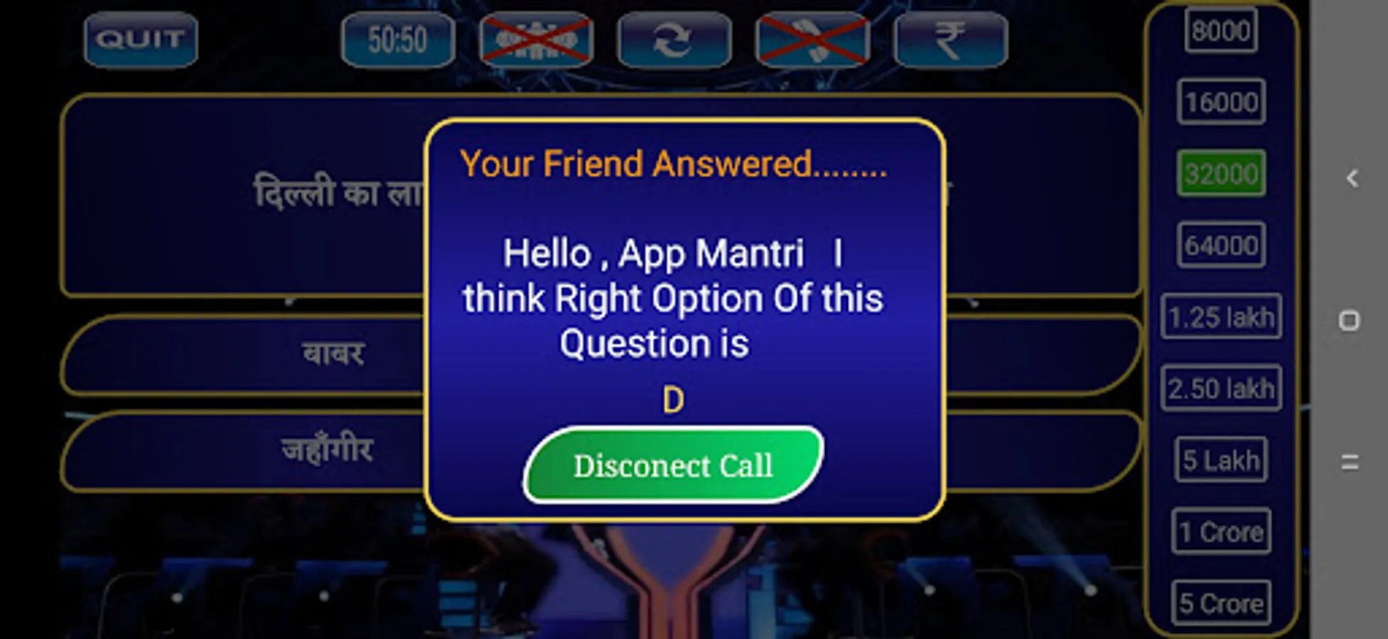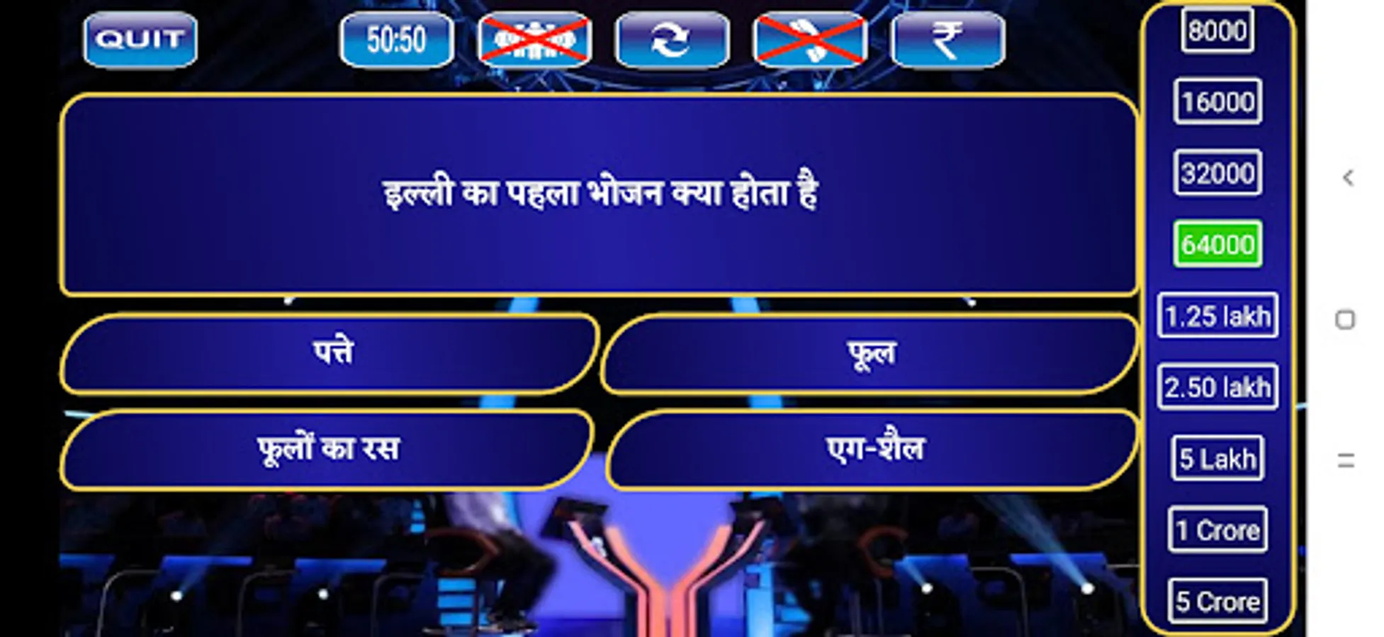 The game Kase Bane Crorepati KBC is totally made for entertainment & improve your general knowledge you can also play this game for improve your GK .If you don't know the answer to any question then you can use any one of the 4 life lines which will help you to know the correct answer.