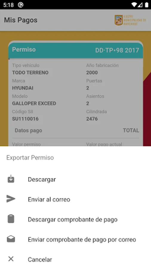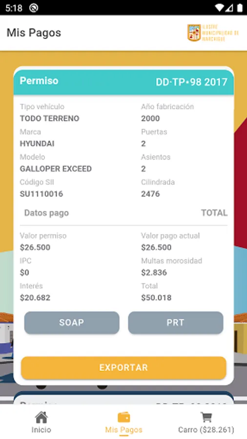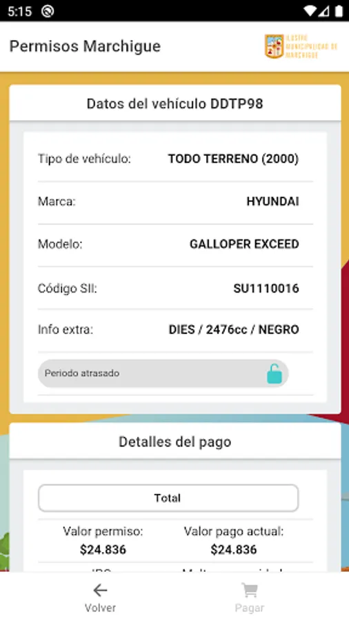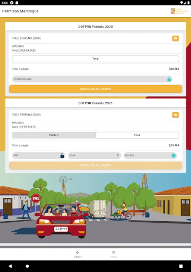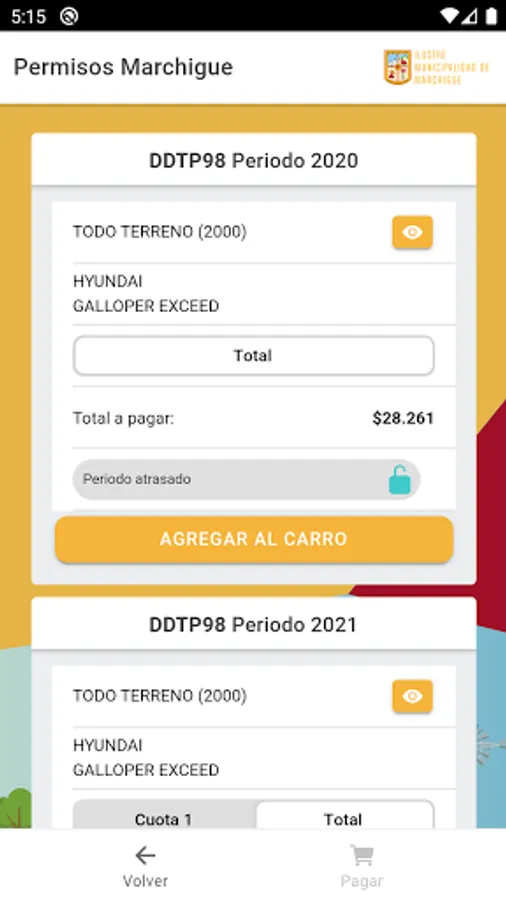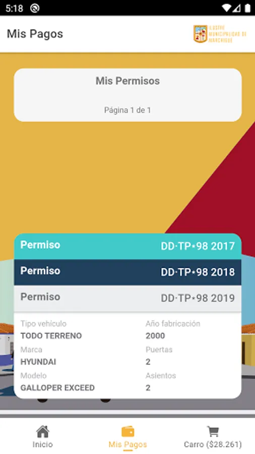 In this app you will be able to pay all your renewals and fines of circulation permits that you obtained in the municipality of Marchigüe, and year after year you will save all your permits, payments and fines on your cell phone to see them when you need them. Just enter, put your patent or your rut, select your permission to renew, and pay it, it's that simple!