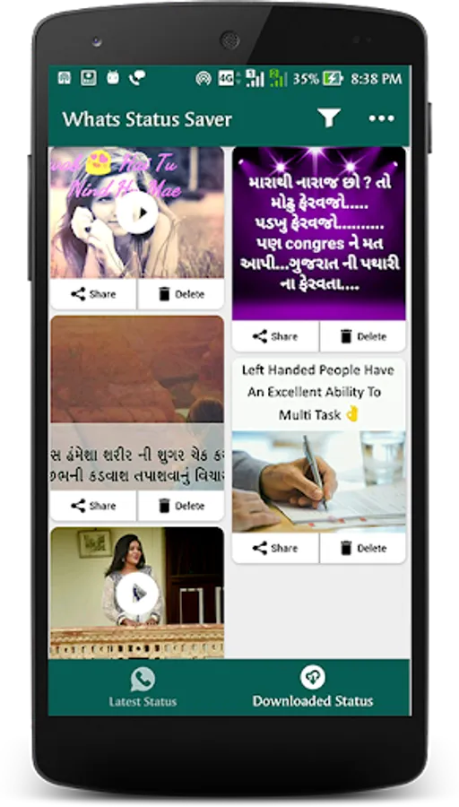 Status Downloader for Whatsap let you download your Whatsap contacts photo images, GIF, Video of new status feature of whatsap app account. But this feature is limited time line and now allow to download and share. If you want to download and share you friends then no worries. This app allow to download WhatsAp status download and also share your friends.
